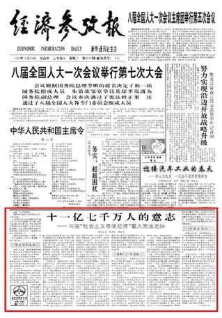 1993年,“國家實行社會主義市場經(jīng)濟”被寫進了憲法。