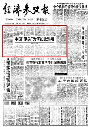 也是1988年,日本友人小林實先生對我國經(jīng)濟考察后說,“中國對企業(yè)太嬌慣了”。1988年7月25日,一篇題為《少些父愛主義 多些市場磨難》的評論,成為《經(jīng)濟參考報》在我國經(jīng)濟體制改革到了關(guān)鍵時刻發(fā)出的疾呼。