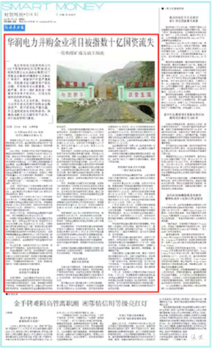 2013年7月5日刊登的《華潤電力并購企業(yè)項目被指數(shù)十億國資流失》一文,引起中紀委和國務院國資委等監(jiān)管部門重視,掀開了華潤集團腐敗窩案!
