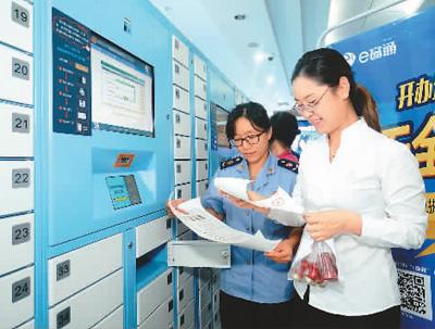 一名申請開辦企業(yè)者在北京市通州區(qū)政務(wù)服務(wù)中心通過“刷臉”領(lǐng)取營業(yè)執(zhí)照。記者 賀勇 攝