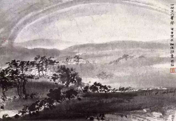 赤橙黃綠青藍(lán)紫,誰(shuí)持彩練當(dāng)空舞?雨后復(fù)斜陽(yáng),關(guān)山陣陣蒼。