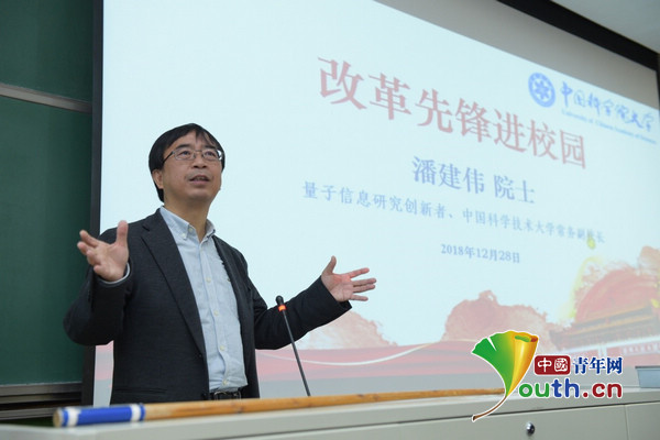 12月28日,潘建偉院士在成立于1978年、與改革開放同頻共振的中國科學(xué)院大學(xué)做了一場精彩的報(bào)告,第一教學(xué)樓101報(bào)告廳人山人海,過道和門口都擠滿了學(xué)生,另外開辟的直播教室也座無虛席。