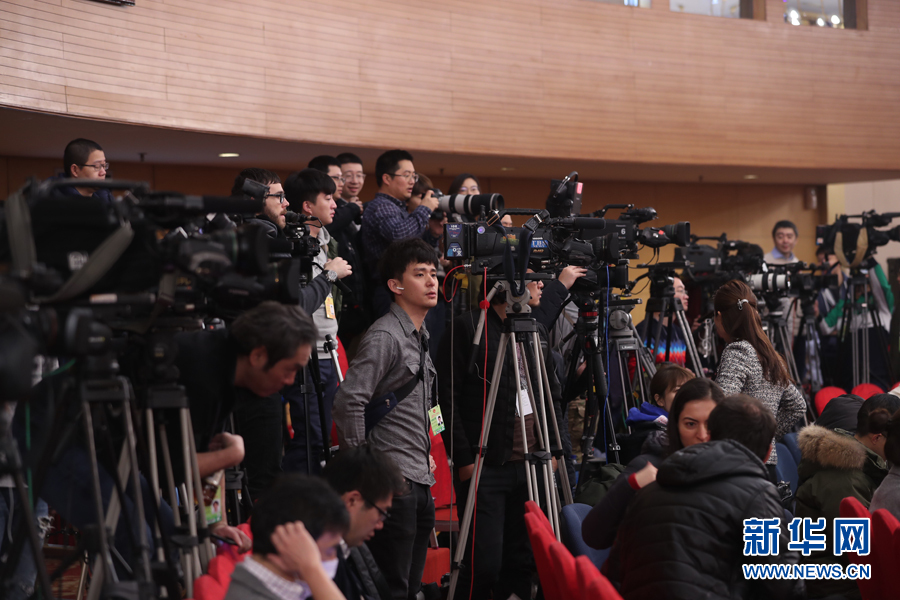 十三屆全國人大一次會議新聞中心3月8日上午10時在梅地亞中心多功能廳舉行記者會,邀請外交部部長王毅就“中國外交政策和對外關(guān)系”回答中外記者提問。圖為記者在現(xiàn)場。 新華網(wǎng)/中國政府網(wǎng) 陳杰 攝