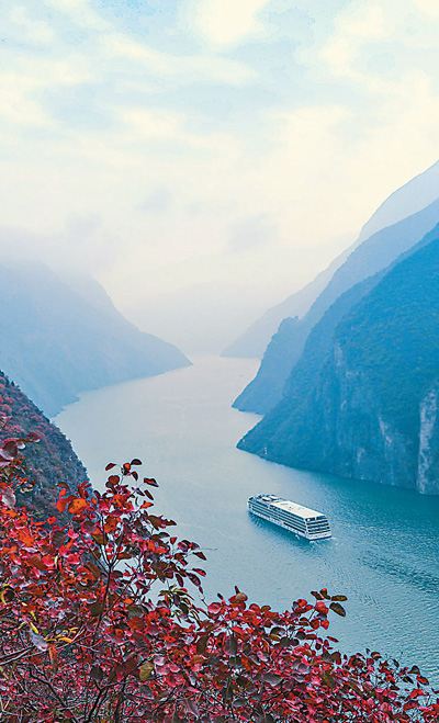 游輪在長(zhǎng)江瞿塘峽行駛。文振效攝(人民視覺)