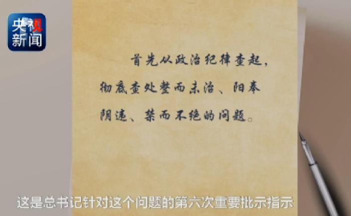美麗秦嶺,違建別墅不斷蔓延。中央要求必須整治,地方政府敷衍了事,形式主義走過(guò)場(chǎng),官僚主義不作為。總書(shū)記作出六次重要批示指示,扭住不放清頑疾,親力親為治亂象,一抓到底正風(fēng)紀(jì)。