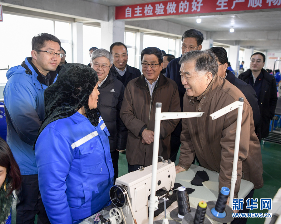 近日,中共中央政治局常委、全國(guó)政協(xié)主席汪洋在甘肅臨夏回族自治州調(diào)研脫貧攻堅(jiān)工作,看望慰問貧困群眾和基層扶貧干部。這是1月14日,汪洋在和政縣考察扶貧車間,調(diào)研東西部扶貧協(xié)作情況。 新華社記者 李學(xué)仁 攝