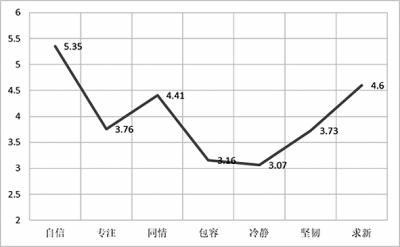 調(diào)查采用6分制等級(jí)問(wèn)卷,結(jié)果以平均分、標(biāo)準(zhǔn)分表示各心理品質(zhì)的發(fā)展水平,以1-6分代表從低到高的發(fā)展趨勢(shì),6分為滿(mǎn)分。