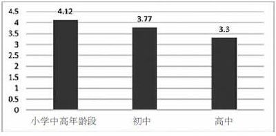 兒童專(zhuān)注自己事情的心理品質(zhì)在小學(xué)中高年段、初中和高中表現(xiàn)出明顯差異,小學(xué)生專(zhuān)注品質(zhì)分值最高,為4.12分,到高中生降為3.3分。這個(gè)變化有兩方面的解釋。一是隨著年齡的增加兒童注意力的集中品質(zhì)有所下降,更容易分散;二是隨著年齡的增加,兒童注意力分配水平能力在提升。