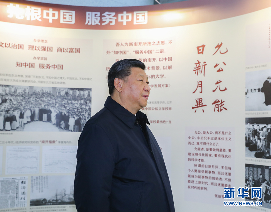 1月16日至18日,中共中央總書記、國(guó)家主席、中央軍委主席習(xí)近平在京津冀考察,主持召開京津冀協(xié)同發(fā)展座談會(huì)并發(fā)表重要講話。這是1月17日上午,習(xí)近平在天津南開大學(xué)參觀校史展覽。 新華社記者 謝環(huán)馳 攝