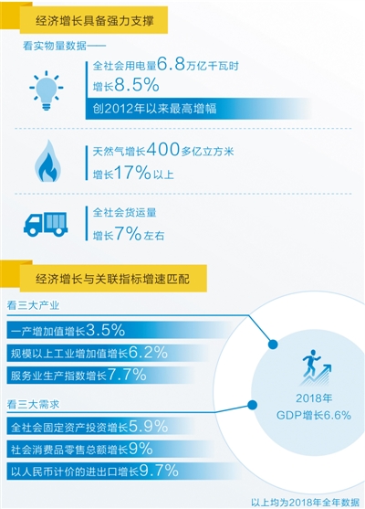 “2018年,無論按照GDP核算三種方法的哪一種看,支撐6.5%左右增速的數(shù)據(jù)都是匹配的。”孟瑋說。