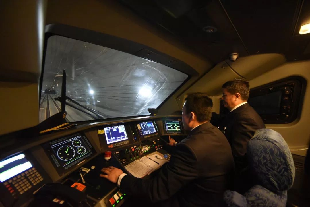 2019-01-29,內(nèi)蒙古呼和浩特至烏蘭察布站D6966次列車駕駛室。春運第9天,高鐵司機全神貫注地駕駛動車組行駛在隧道中。作者:玩家