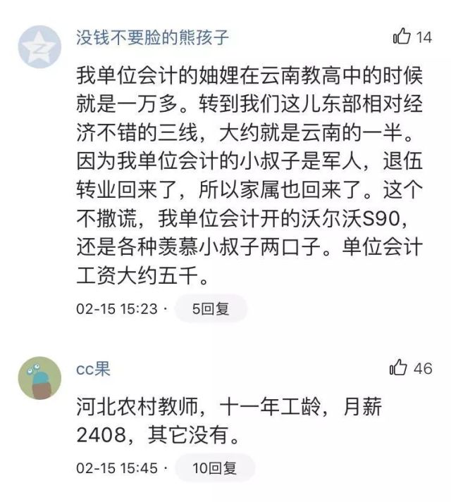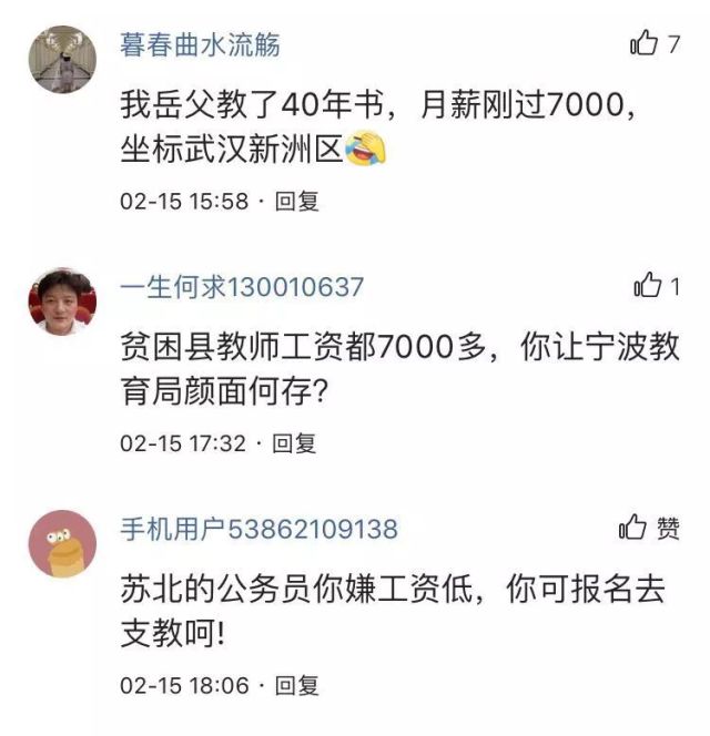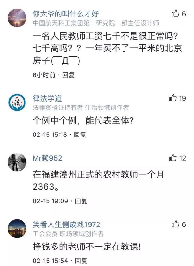 2月15日,經(jīng)濟(jì)日?qǐng)?bào)新聞客戶端推送消息《教育部:某些國(guó)家級(jí)少數(shù)民族貧困縣教師月薪已達(dá)7000元》,引起大家的強(qiáng)烈反響。對(duì)于目前大多數(shù)教師的薪資水平、怎么看待教師待遇、怎么評(píng)價(jià)待遇的高低才客觀等問題,眾多網(wǎng)友進(jìn)行了熱烈的討論,有教師還曬出了自己工資單……