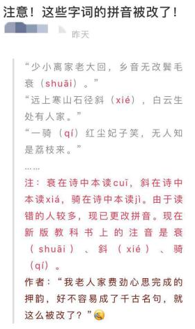 19日,一篇名為《注意!這些字詞的拼音被改了》的文章在朋友圈刷屏。