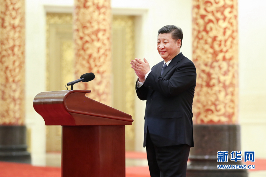 2月20日,黨和國(guó)家領(lǐng)導(dǎo)人習(xí)近平、李克強(qiáng)、栗戰(zhàn)書(shū)、汪洋、王滬寧、趙樂(lè)際、韓正等在北京人民大會(huì)堂會(huì)見(jiàn)探月工程嫦娥四號(hào)任務(wù)參研參試人員代表。這是習(xí)近平發(fā)表重要講話(huà)。 新華社記者鞠鵬攝