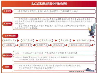 昨日,記者從北京市人社局獲悉,北京近日新修訂出臺了《北京市高等學(xué)校教師職務(wù)聘任管理辦法》,高校教師將進行分類評價,職稱和崗位聘任實行聘期制,同時將加強職稱評審權(quán)下放后的監(jiān)管。