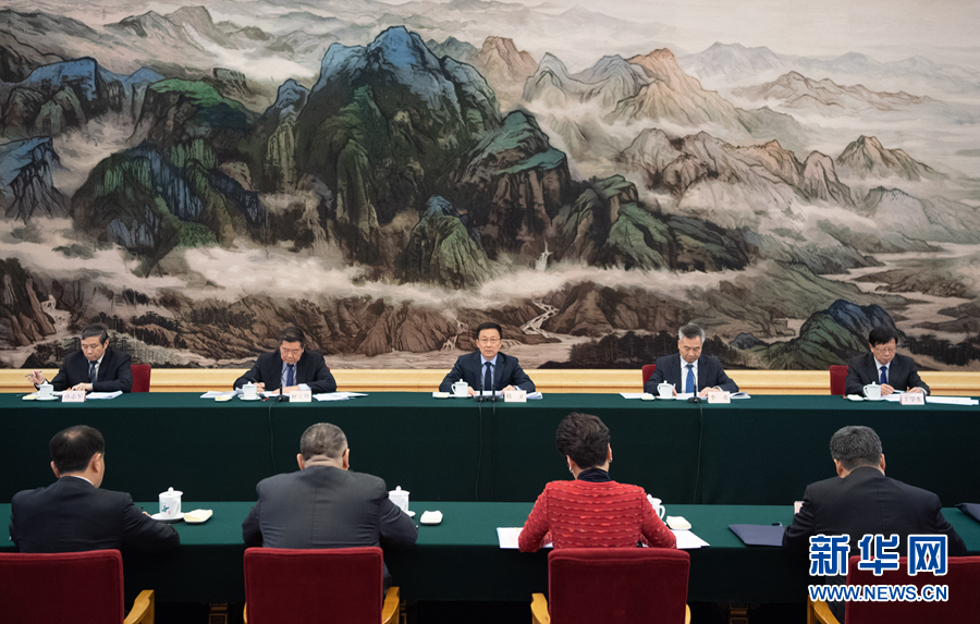 3月1日,中共中央政治局常委、國務(wù)院副總理、粵港澳大灣區(qū)建設(shè)領(lǐng)導(dǎo)小組組長韓正在北京人民大會堂主持召開粵港澳大灣區(qū)建設(shè)領(lǐng)導(dǎo)小組會議。 新華社記者 申宏 攝