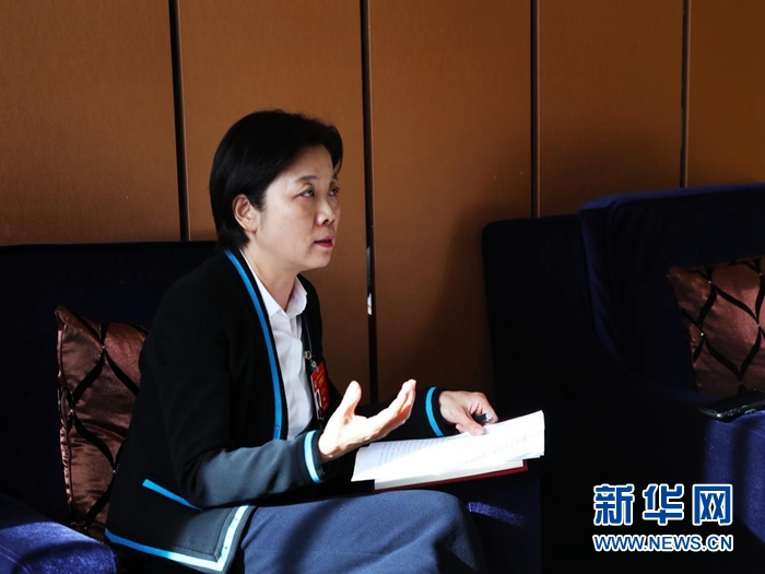 全國(guó)政協(xié)委員、民進(jìn)中央委員、天津市教委副主任孫惠玲接受記者采訪。