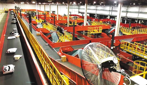 順豐速運采用雙層自動分揀系統(tǒng),大大提高電子單識別效率。吉蕾蕾 攝