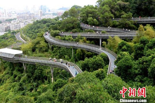 福州市園林局工作人員說(shuō),福州的城市綠道建設(shè)結(jié)合串珠公園建設(shè)、內(nèi)河治理,使市民和游客能享有登山看城、游園親水的“一站式”體驗(yàn),其中“福道”成為了福州這個(gè)“山水”城市特有的“名片”。