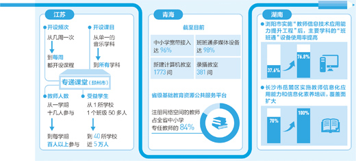 然而,要充分發(fā)揮教育信息化的優(yōu)勢,還需實現(xiàn)信息化手段從“用起來”到“用得好”轉(zhuǎn)變。這就需要依靠培訓,使教育管理部門和一線師生的信息化素養(yǎng)同步提升。 湖南多地實行四級培訓制度:通過“國培計劃”等,培訓中小學校長及教育主管部門人員;通過湖南省中小學教師信息技術(shù)應用能力提升工程,培訓信息技術(shù)骨干教師和專任骨干教師;通過組織電化教育館及高校等單位的專家學者赴基層,培訓教育信息化基礎教師;培育出來的“種子教師”,為所在學校的科任教師普及教育信息化知識。