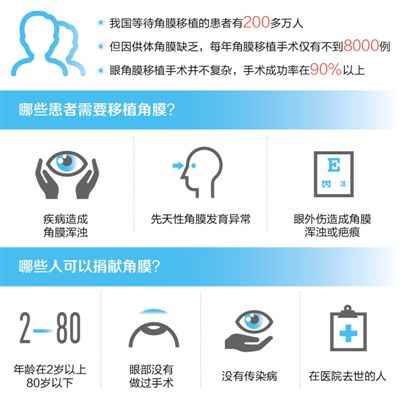 據(jù)統(tǒng)計,我國等待接受角膜移植的患者有200多萬,但因供體角膜缺乏,全國各大醫(yī)院每年完成的角膜移植手術(shù)僅有不到8000例。