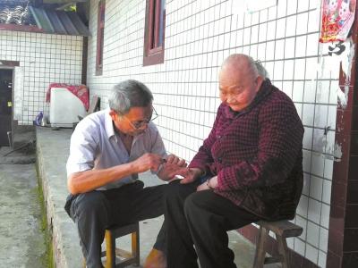 4月11日上午,在內江市東興區(qū)高梁鎮(zhèn)楊嶺村一戶農(nóng)房里,73歲的村民陳應全正拿著梳子嫻熟地為96歲的母親梳頭。梳完頭,陳應全又拿出蘋果,削皮后分成小塊喂給母親吃。