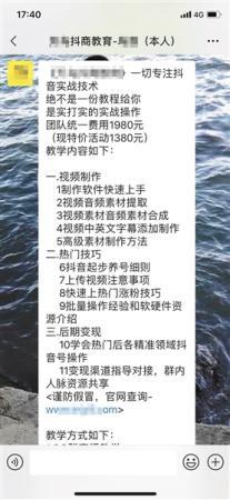 “最開始對方說得天花亂墜,每天晚上9點統(tǒng)一開課,由資深抖音專家一對一教導?!焙舱f,“課程除了教導視頻制作外,更多會就養(yǎng)號、漲粉等技巧進行培訓?!钡珜W習了幾天后,胡翰覺得自己似乎被騙了?!皩<摇泵刻靸H是在微信群發(fā)布一些短視頻制作課程,讓學員跟著操作。
