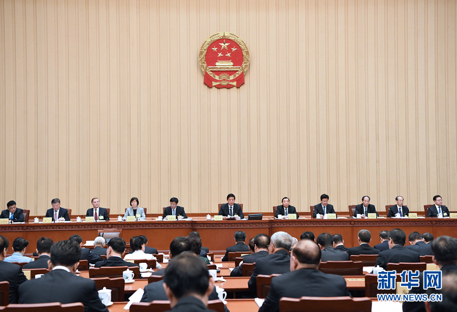 4月23日,十三屆全國人大常委會第十次會議在北京人民大會堂閉幕。栗戰(zhàn)書委員長主持會議。新華社記者 饒愛民 攝