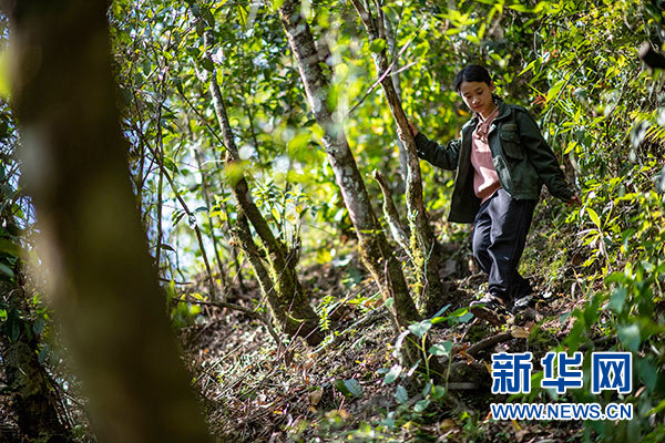 云南貢山縣獨龍江鄉(xiāng)巴坡村森林資源管護隊小隊長木秋云在林間巡護(4月25日攝)。新華社記者 江文耀 攝