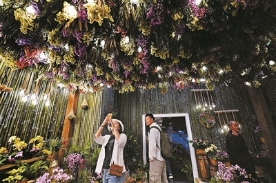 此外,在“秋日·食味”展廳里,葡萄架上結(jié)滿(mǎn)了葡萄,餐桌上還擺放著葡萄酒杯,向游客展示延慶區(qū)的葡萄酒產(chǎn)業(yè),同時(shí)將園藝與日常生活連結(jié)起來(lái),體現(xiàn)“延慶·園藝·慢生活”的主題。