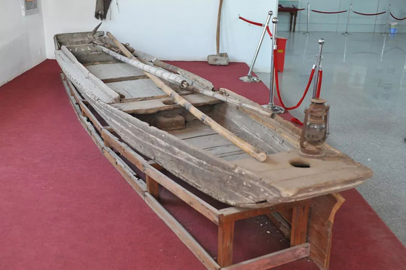 中央紅軍渡過于都河時所用的馬燈、門板、渡船等物。新華社記者 高皓亮 攝