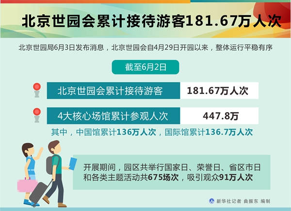新華社北京6月3日電(記者魏夢佳、丁靜)北京世園局3日發(fā)布消息,北京世園會自4月29日開園以來,整體運(yùn)行平穩(wěn)有序。截至6月2日,北京世園會累計(jì)接待游客181.67萬人次,4大核心場館累計(jì)參觀人次達(dá)447.8萬。
