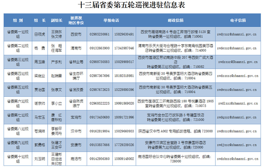 根據(jù)安排,省委巡視組將在被巡視地區(qū)、單位工作1個月左右。巡視期間設值班電話、郵政信箱、電子郵箱等,巡視組受理信訪時間截止到2019年6月30日。省紀委監(jiān)委信訪舉報受理電話(029—12388)、信箱(西安市雁塔區(qū)雁塔路南段十號陜西省紀委監(jiān)委信訪室)和網(wǎng)上舉報窗口(http://shaanxi.12388.gov.cn),同步受理涉及秦嶺生態(tài)環(huán)境保護的信訪舉報。根據(jù)秦嶺生態(tài)環(huán)境保護專項巡視工作要求,省委巡視組主要受理反映被巡視地區(qū)和單位秦嶺生態(tài)環(huán)境保護方面的問題和線索。對不屬于這次專項巡視受理范圍的信訪問題反映,將按規(guī)定轉(zhuǎn)交被巡視地區(qū)或單位和有關(guān)部門認真處理。