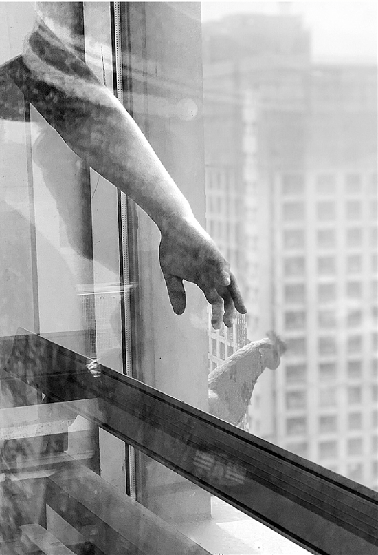 記者觀察了一下,玻璃幕墻外的橫梁其實并不寬,大約20厘米,最窄處只有10厘米。物業(yè)很擔(dān)心,“這么高的地方,無論是對業(yè)主,還是對這只雞來說,都不安全。”當(dāng)時,他們就考慮怎么把雞給救下來。