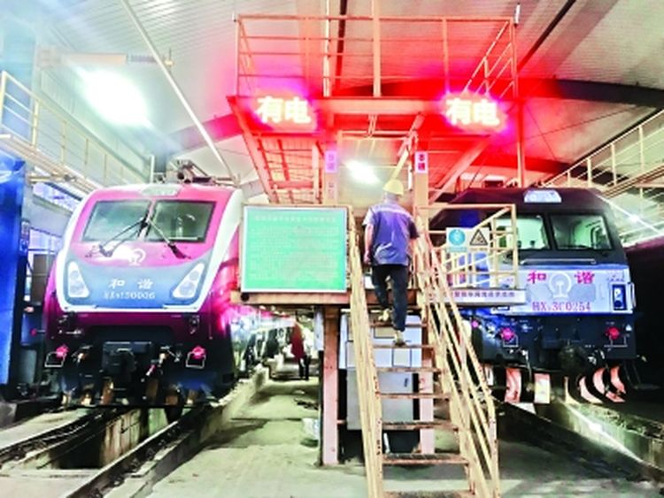 車(chē)頭每來(lái)回牽引完一趟列車(chē),需回到檢修庫(kù)進(jìn)行全身“體檢”。檢修團(tuán)隊(duì)隨之登場(chǎng),每臺(tái)車(chē)頭的檢修時(shí)間不能超過(guò)70分鐘,檢修完后,車(chē)頭就進(jìn)入待命狀態(tài),按照計(jì)劃執(zhí)行新的牽引任務(wù)。
