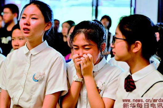7月21日,在廈門六中音樂老師高至凡的追思會(huì)現(xiàn)場,合唱團(tuán)學(xué)生含淚送別自己的老師。新華社記者魏培全攝