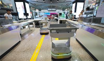 記者注意到,開包安檢員身旁有一臺小機(jī)器人,安檢員將書包放在機(jī)器人上方的行李筐內(nèi),機(jī)器人便自動將書包送到安檢口。每一條高效安檢通道都配置兩臺小機(jī)器人,以滿足可疑行李自動復(fù)檢的需要。(記者 吳婷婷)