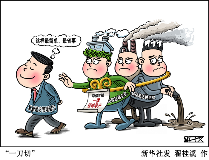 值得注意的是,有些地方“一刀切”政策開始搞移花接木。中部多家企業(yè)的相關(guān)負(fù)責(zé)人反映,遇到上級部門前來檢查、督查時(shí),地方政府擔(dān)心指標(biāo)不符合要求,就讓企業(yè)一律采取停產(chǎn)應(yīng)對。可在對外發(fā)布消息時(shí),卻說成“企業(yè)停產(chǎn)檢修”“企業(yè)升級改造設(shè)備”,本是地方的“一刀切”要求,卻搖身一變成為企業(yè)的“自行選擇”。