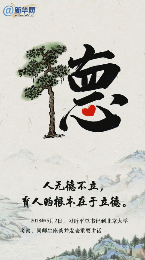 2018年5月2日,習近平總書記到北京大學考察,同師生座談并發(fā)表重要講話。他強調(diào),人無德不立,育人的根本在于立德。這是人才培養(yǎng)的辯證法。辦學就要尊重這個規(guī)律,否則就辦不好學。?