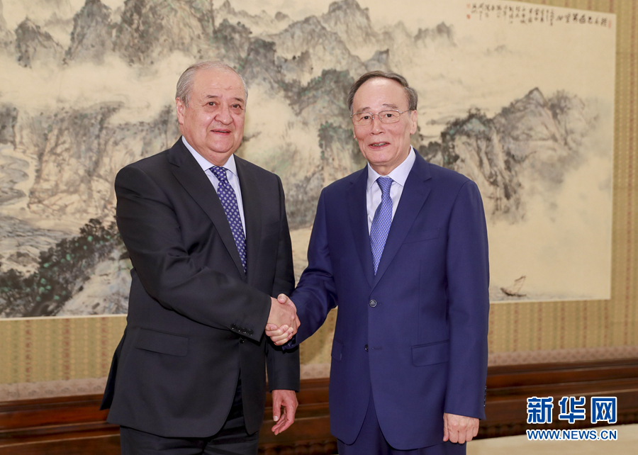 8月19日,國家副主席王岐山在北京中南海會見烏茲別克斯坦外長卡米洛夫。新華社記者 丁林 攝