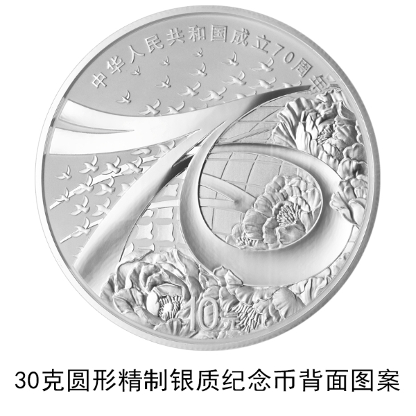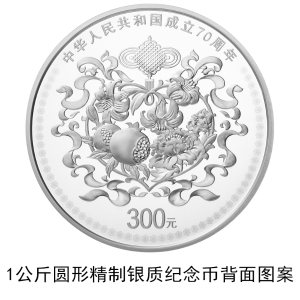 央行介紹,金質(zhì)紀念幣和銀質(zhì)紀念幣正面圖案均為中華人民共和國國徽,并刊國名、年號。金質(zhì)紀念幣有150克圓形和8克圓形兩種,其中150克圓形金質(zhì)紀念幣背面圖案為寓意民族團結同心,普天歡頌國慶的組合圖案,最大發(fā)行量2000枚。銀質(zhì)紀念幣有300元、50元、10元三種面額。該套金銀紀念幣由中國金幣總公司總經(jīng)銷。