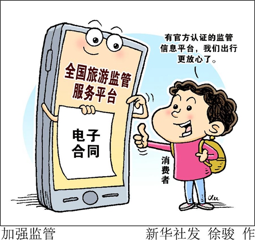 “我剛給全家人從旅行社訂了跟團游,就收到了提醒簽約旅游電子合同的短信。有官方認證的監(jiān)管信息平臺,我們出行更放心了。”上海市民方赟梅說,家人和朋友對納入“全國旅游監(jiān)管服務平臺”的電子合同頻頻點贊。
