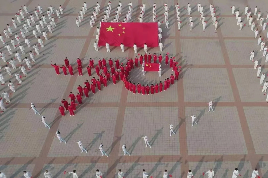 2019年9月28日,河南濮陽。中原油田離退休管理處老年太極拳協(xié)會舉辦太極拳展示,慶祝中華人民共和國成立70周年。作者:楊煥文