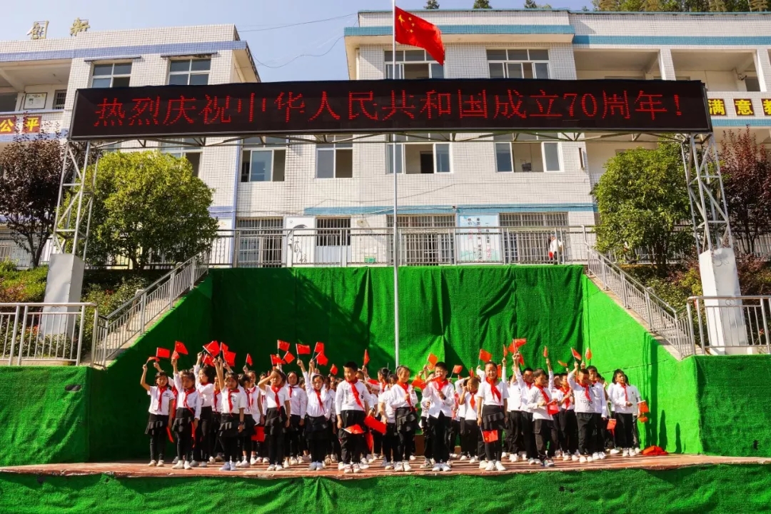 2019年9月30日,湖北利川。湖北利川元寶小學(xué)慶祝國慶。作者:龍斯斯