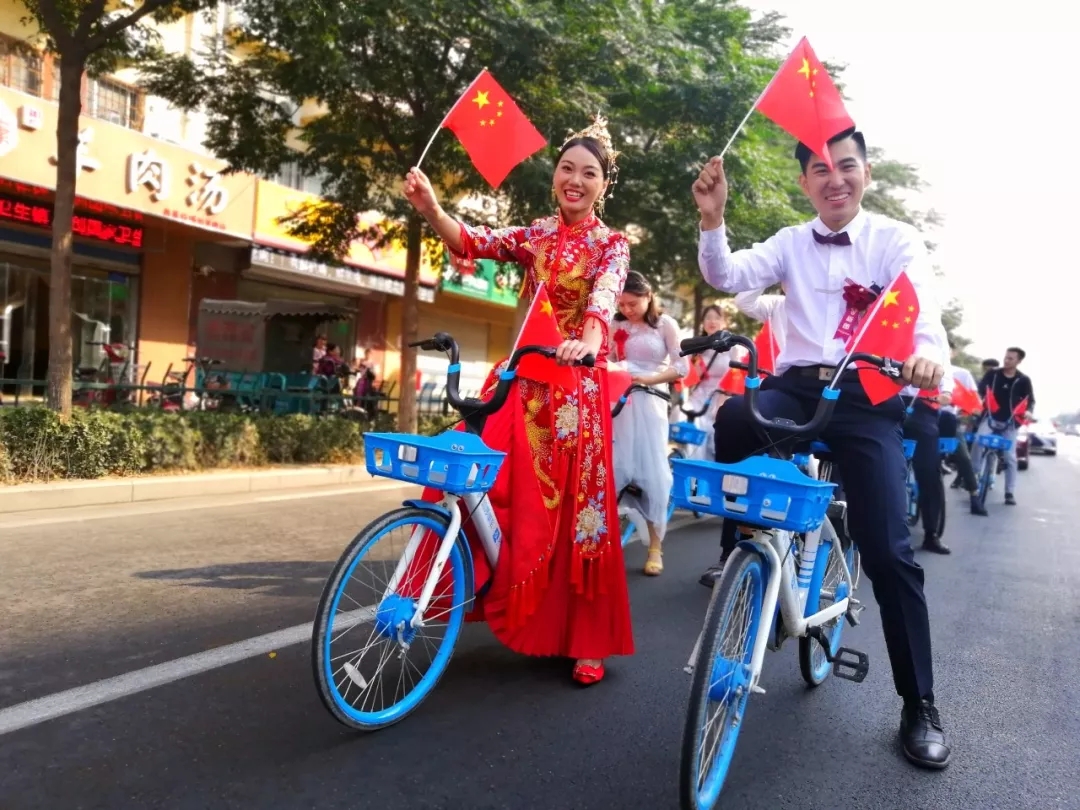 2019年10月1日,山東濟南。在街上偶遇一對新人。作者:濟水知音