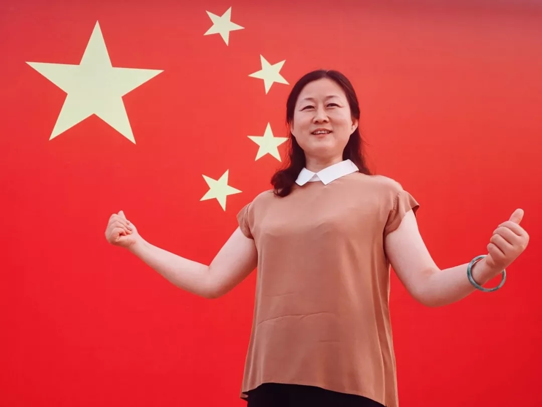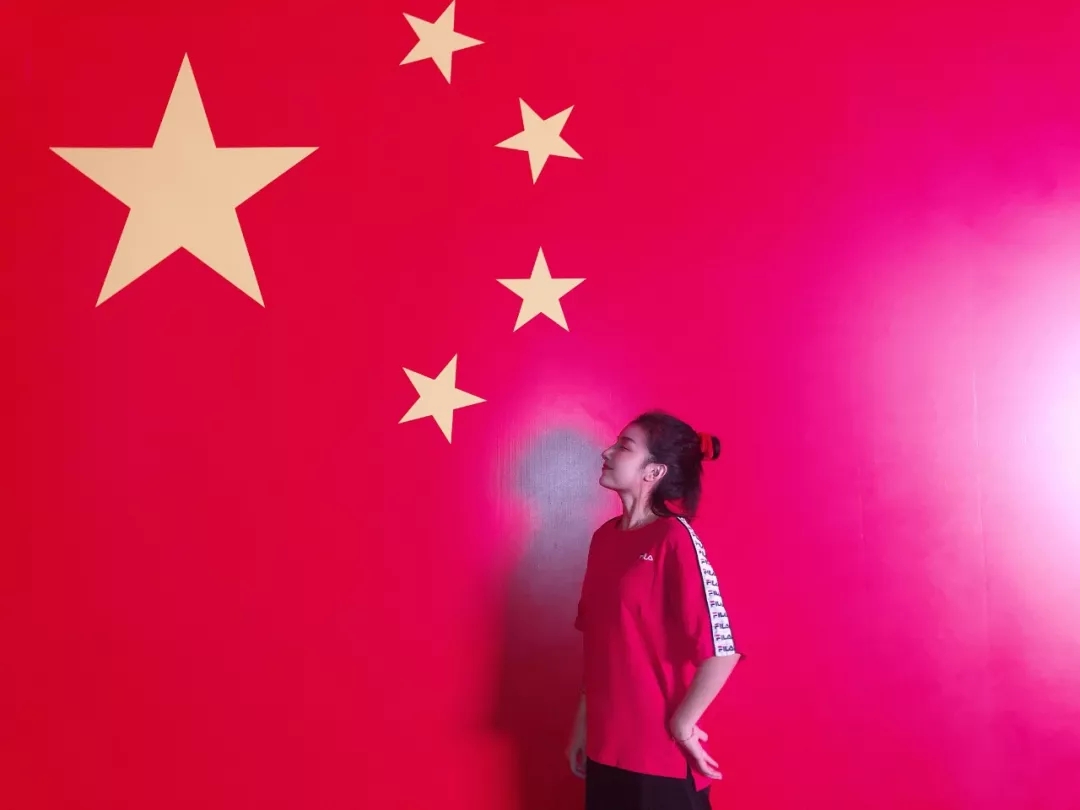 2019年9月30日,新疆阜康。我和國旗合個影,祖國見證我成長。作者:安娜