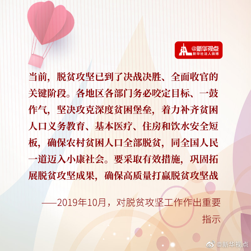 讓貧困人口和貧困地區(qū)同全國一道進入全面小康社會,是中國共產(chǎn)黨的莊嚴承諾,也是習近平總書記心里最牽掛的大事。當前脫貧攻堅戰(zhàn)進入決勝的關(guān)鍵階段。在第六個國家扶貧日到來之際,讓我們一起學習總書記關(guān)于脫貧攻堅的這些話?!?????