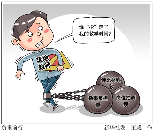今年9月,中央深改委審議通過《關(guān)于減輕中小學(xué)教師負(fù)擔(dān)進(jìn)一步營(yíng)造教育教學(xué)良好環(huán)境的若干意見》,要求讓中小學(xué)教師潛心教書、靜心育人。記者走訪發(fā)現(xiàn),評(píng)比考核過多、無(wú)關(guān)社會(huì)事務(wù)進(jìn)校園、頻繁抽調(diào)中小學(xué)教師等“槽點(diǎn)”仍在多地存在。