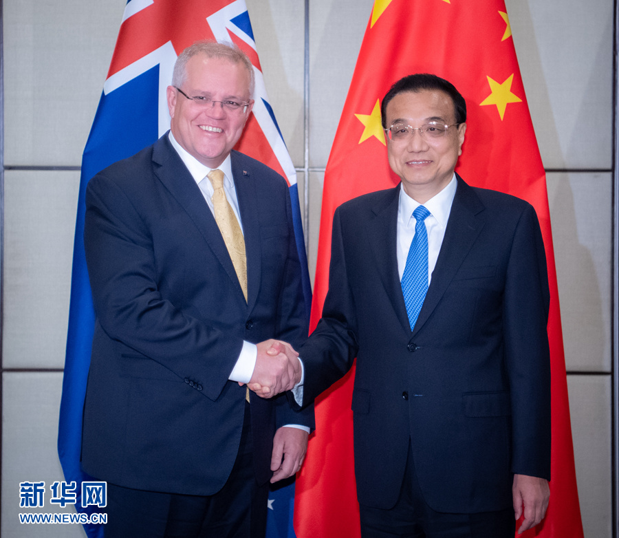 當(dāng)?shù)貢r(shí)間11月3日下午,國(guó)務(wù)院總理李克強(qiáng)在曼谷出席東亞合作領(lǐng)導(dǎo)人系列會(huì)議期間,同澳大利亞總理莫里森舉行第七輪中澳總理年度會(huì)晤。 新華社記者翟健嵐攝