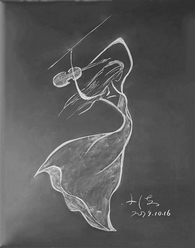 朱中海,揚(yáng)州高等職業(yè)技術(shù)學(xué)?;A(chǔ)教育部主任、數(shù)學(xué)教師。今年57歲的他,已教了35年數(shù)學(xué)。揚(yáng)子晚報(bào)記者昨日找到朱老師,看到了他去年和今年“創(chuàng)作”的粉筆畫。之所以要用“創(chuàng)作”這個(gè)顯得正式的詞語(yǔ),因?yàn)橛浾哐劾锏倪@些粉筆畫,雖寥寥數(shù)筆,卻鮮活靈動(dòng),宛如藝術(shù)品。沒(méi)有一定的功力,僅僅靠一些數(shù)學(xué)上的曲線,是無(wú)法完成的。